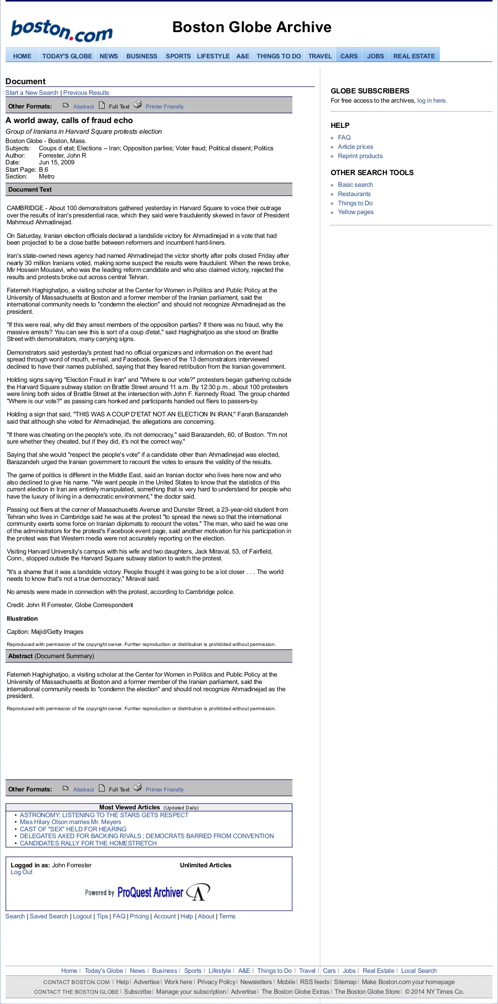 the boston globe – june 15, 2009